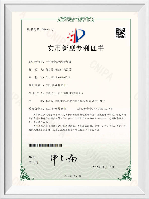 A Nulla Aeris consummatio compressio æstus absorbuit Dryer - Utility Model patent Quisque