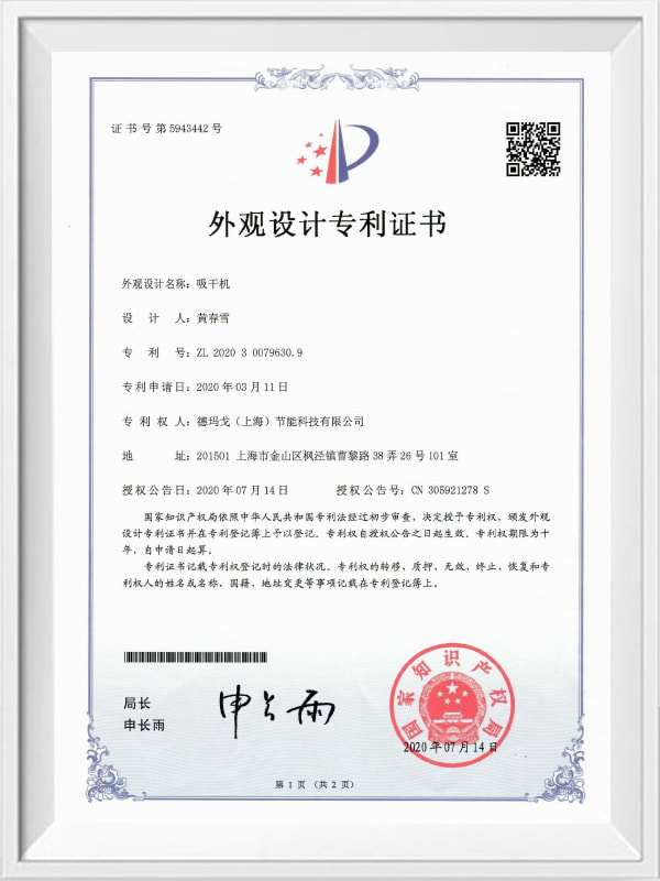 A summo-pressura initia SUCTION Dryer, Utility Model patent certificatorium